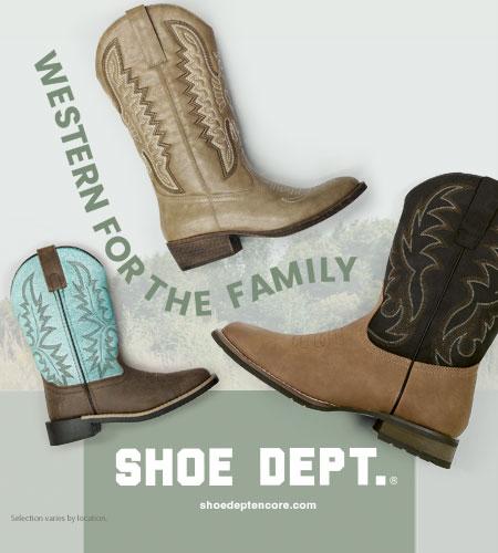 SHOE DEPT.From little wranglers to seasoned pros, find western boots that fit every member of the family. Ready for work, play, or just the weekend. 👢✨ Selection varies by location. While supplies last. Some exclusions apply.